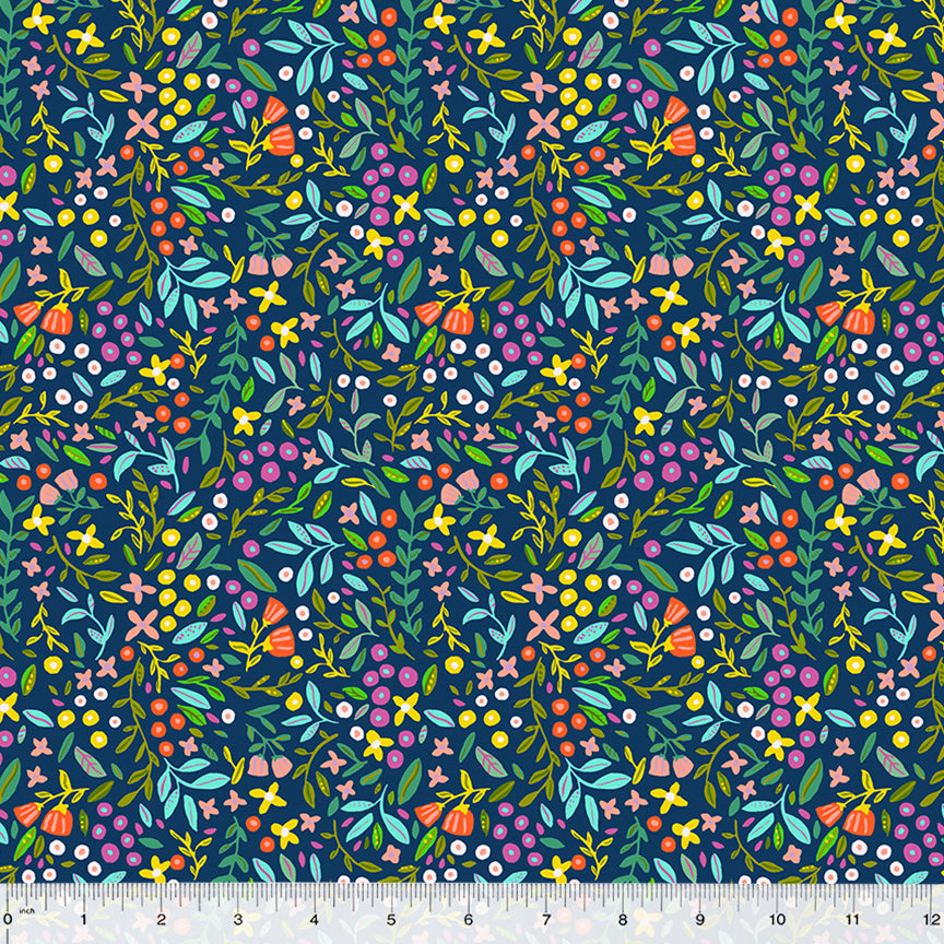 ABCs in Bloom Kelly Angelovic 53689-2 Navy Blossoming Bunches Cotton