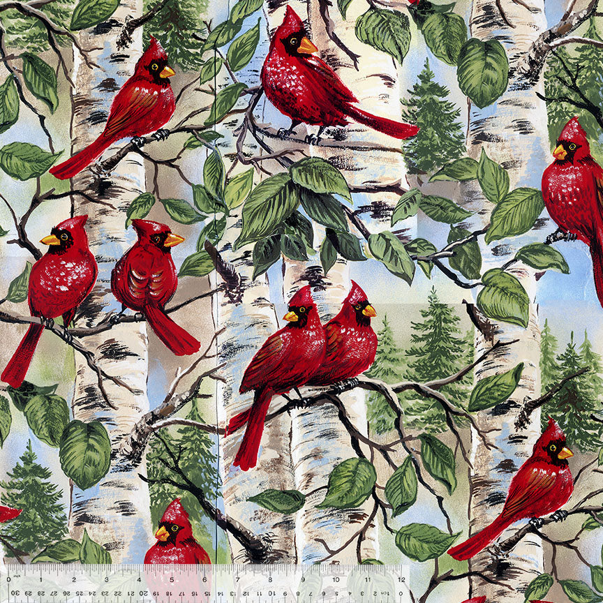 Winterfleece Prints Whistler Studios 21707-X Multi Red Bird Winterfleece