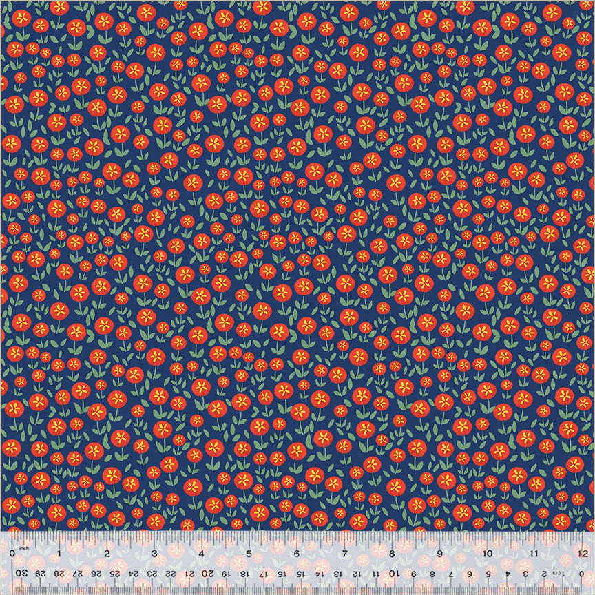 Chicken Littles Whistler Studios 54090-6 Denim Flower Field Cotton