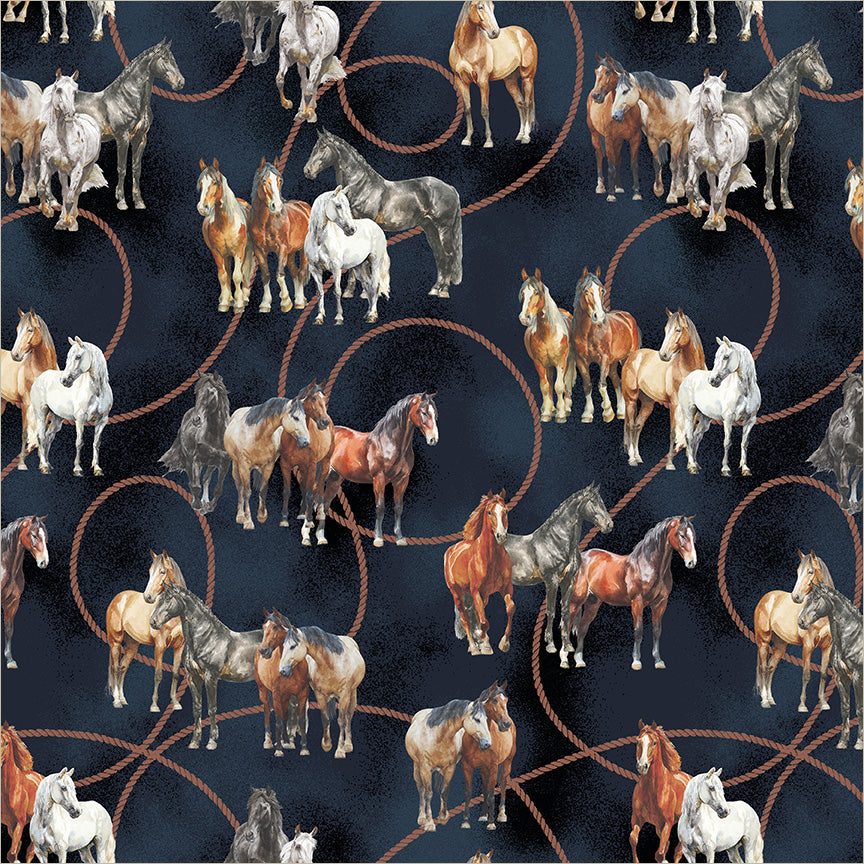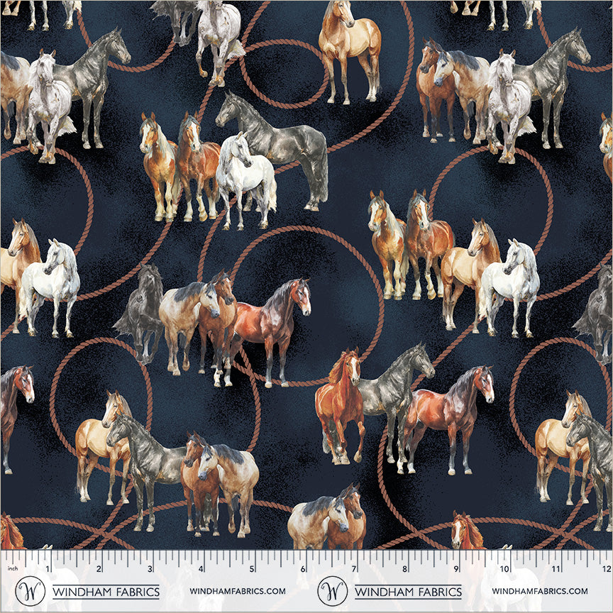Lone Star Trail Whistler Studios 55429-2 Midnight Wild Horses Cotton