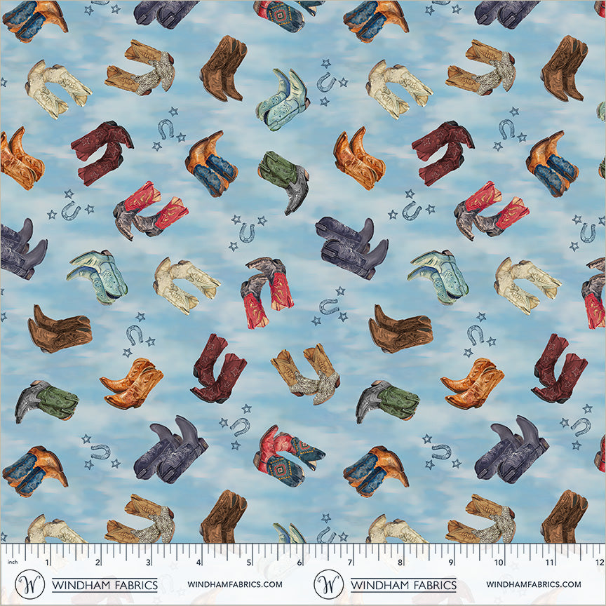 Lone Star Trail Whistler Studios 55431-4 Chambray Country Boots Cotton