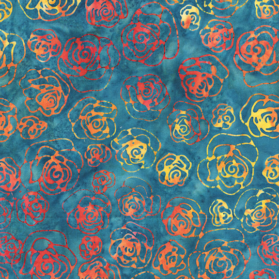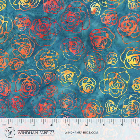 Fawn Baliscapes 20081Q-X Blue Mini Roses Batik Cotton