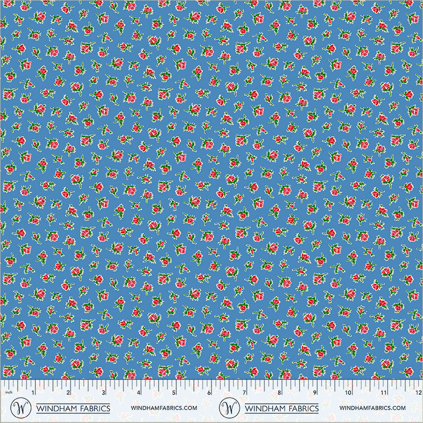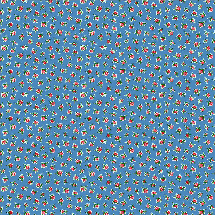 Pocket Posies Whistler Studios 55491-7 Cerulean Rosebud Cotton