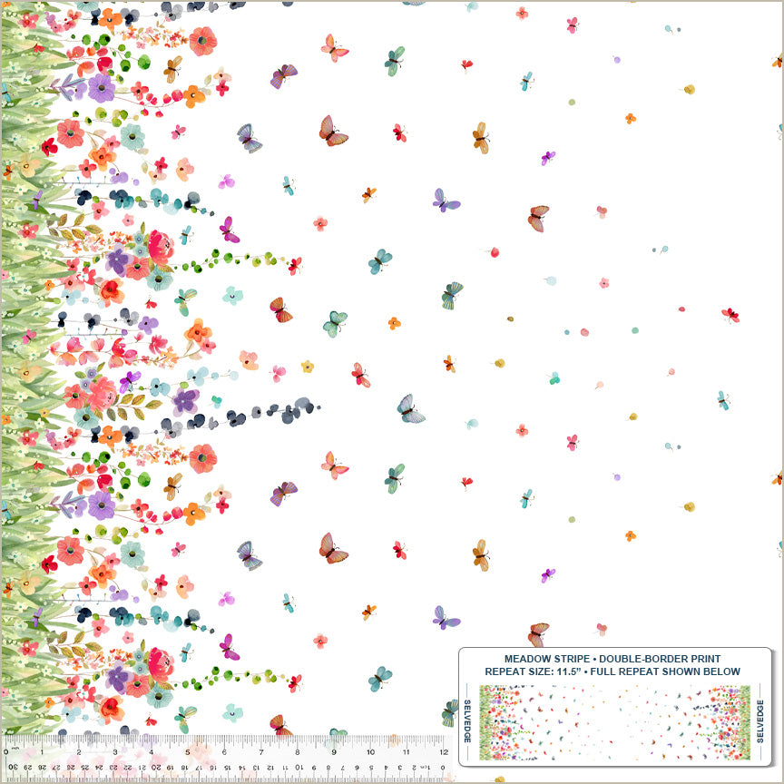 Wild Meadow Sue Miano 54393-2 White Meadow Stripe Cotton