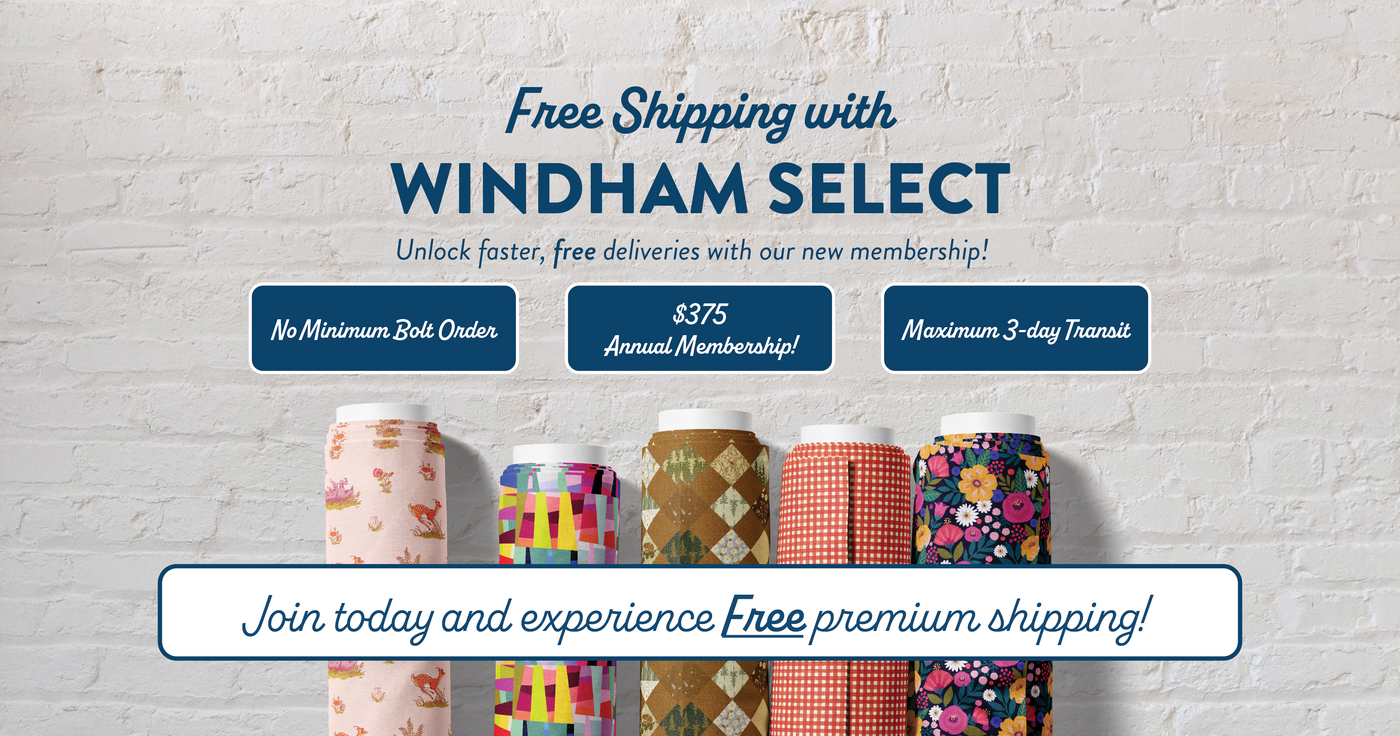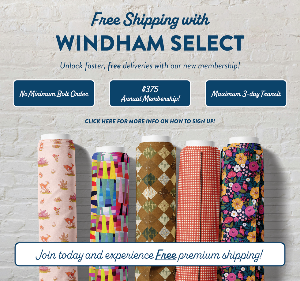 WinterFleece products are not included in Windham Select. Instead, place your order to ship any eight or more bolts in any combination of WinterFleece Prints, solids or Micro Chamois and receive 30% off Fedex Ground shipping.