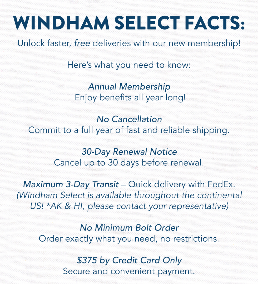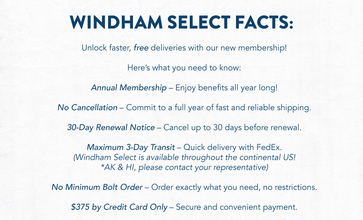 Our annual membership provides fast and reliable shipping with maximum 3-day transit via FedEx, no minimum bolt order requirements, and real-time tracking.