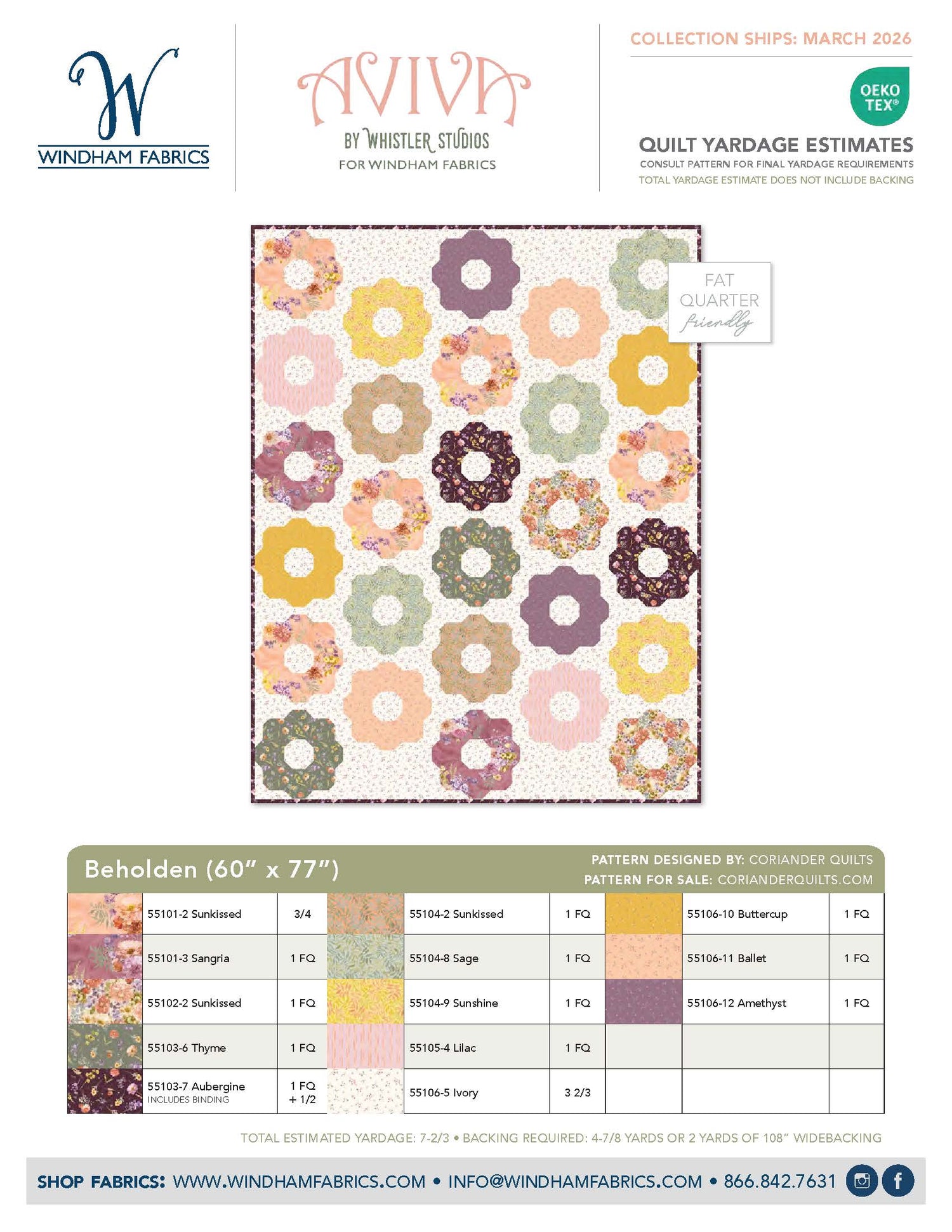 Yardages are based on estimates only. Please refer to pattern for final yardage requirements.